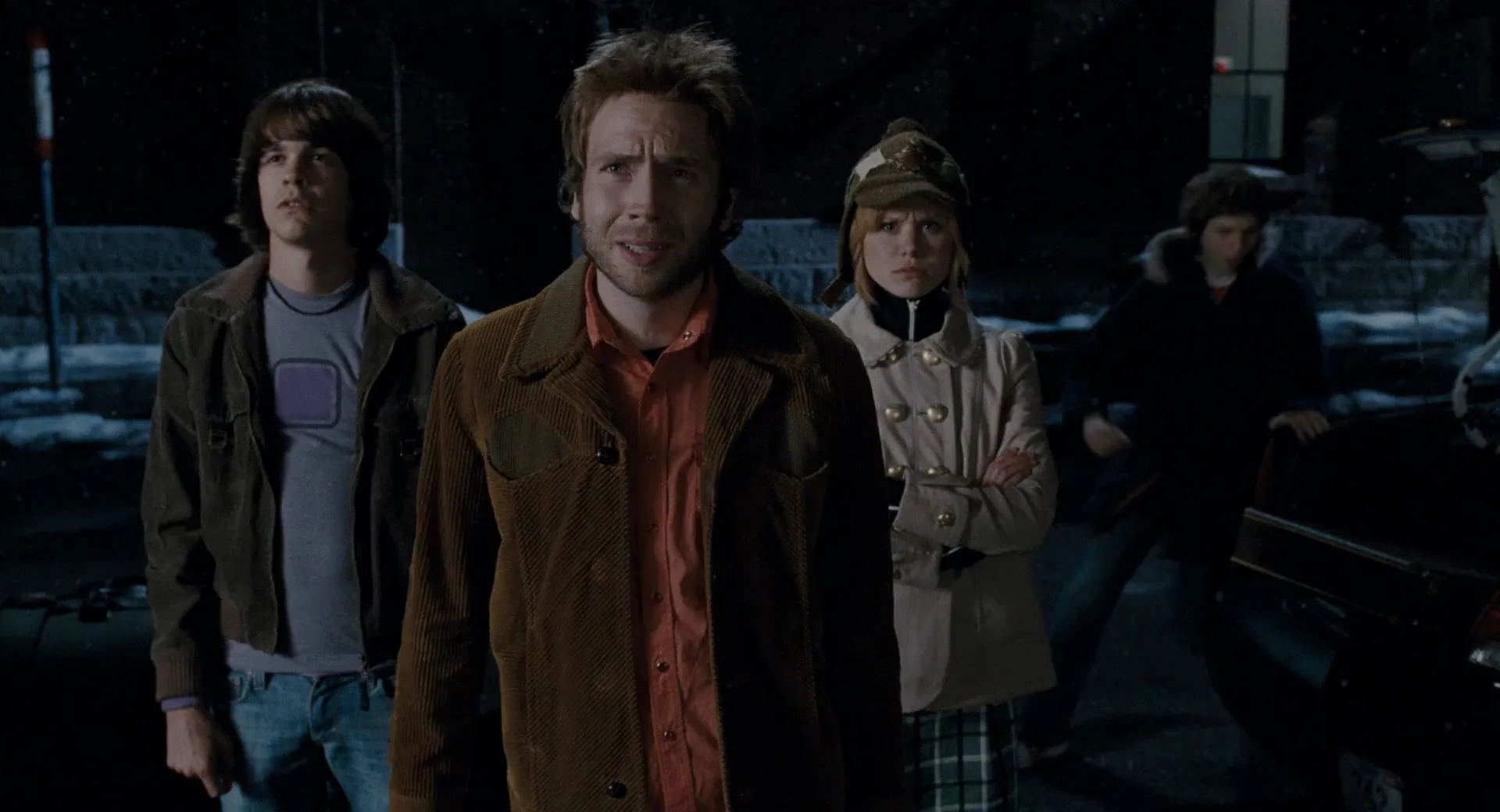 Starring: Michael Cera as Scott Pilgrim, Mary Elizabeth Winstead as Ramona Flowers, Ellen Wong as Knives Chau, Kieran Culkin as Wallace Wells, Alison Pill as Kim Pine, Mark Webber as Stephen Stills, Johnny Simmons as Young Neil, Jason Schwartzman as Gideon Graves, Anna Kendrick as Stacey Pilgrim, Aubrey Plaza as Julie Powers, Satya Bhabha as Matthew Patel, Chris Evans as Lucas Lee, Brandon Routh as Todd Ingram, Mae Whitman as Roxy Richter, Brie Larson as Envy Adams, Keita Saito as Kyle Katayanagi, Shota Saito as Ken Katayanagi, Will Bowes as Party Goer, Celine Lepage as Party Goer, Mark Leroy as Party Goer, Kjartan Hewitt as Jimmy, Ben Lewis as Other Scott, Nelson Franklin as Comeau, Kristina Pesic as Sandra, Matt Watts as Promoter, Ingrid Haas as Monique, Maurie W. Kaufmann as Joel, Marley Otto as Party Goer, Christine Watson as Demon Hipster Chick, Chantelle Chung as Tamara Chen, Don McKellar as Director, Jung-Yul Kim as Goon, Erik Knudsen as Crash, Abigail Chu as Trasha, Tennessee Thomas as Lynette Guycott, Emily Kassie as Winifred Hailey, Michael Lazarovitch as Some Guy, John Patrick Amedori as Lollipop Hipster, Joe Dinicol as Elevator Hipster, Craig Stickland as Elevator Hipster, Bill Hader as The Voice (voice), Thomas Jane as Vegan Police (uncredited), Clifton Collins Jr. as Vegan Police (uncredited), Bryan Lee O'Malley as Lee's Palace Bar Patron (uncredited), George Back as Party Goer